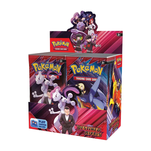 Pokémon Trainers, be on high alert! The nefarious Team Rocket is setting its latest plan into motion, and heroic Trainers are racing to stop it. Join forces with the likes of Cynthia and Garchomp ex, Ethan and Ho-Oh ex, or Arven and Mabosstiff ex… Or reconsider your loyalties and fight alongside Team Rocket’s Pokémon like Mewtwo ex—under the command of Giovanni! Choose a side, assemble your allies, and battle boldly in the Pokémon TCG: Scarlet & Violet—Destined Rivals expansion!