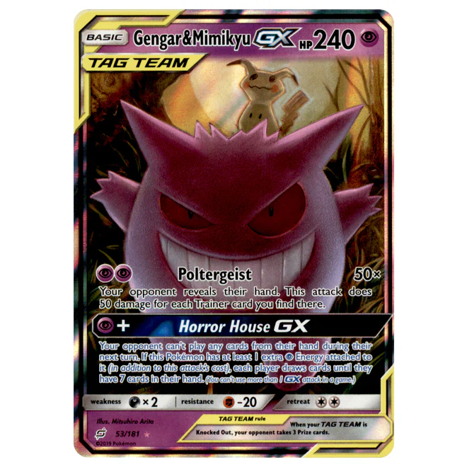 Gengar & Mimikyu is a GX, Basic Psychic type pokemon card from Team Up. (53/181)