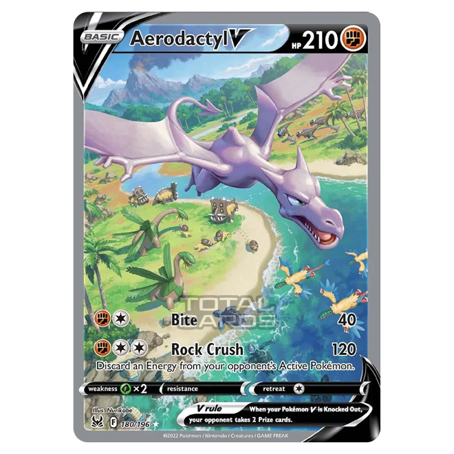 Aerodactyl V is a Rare Ultra – (Basic|V) Fighting type Pokemon card from Lost Origin. (180/196)